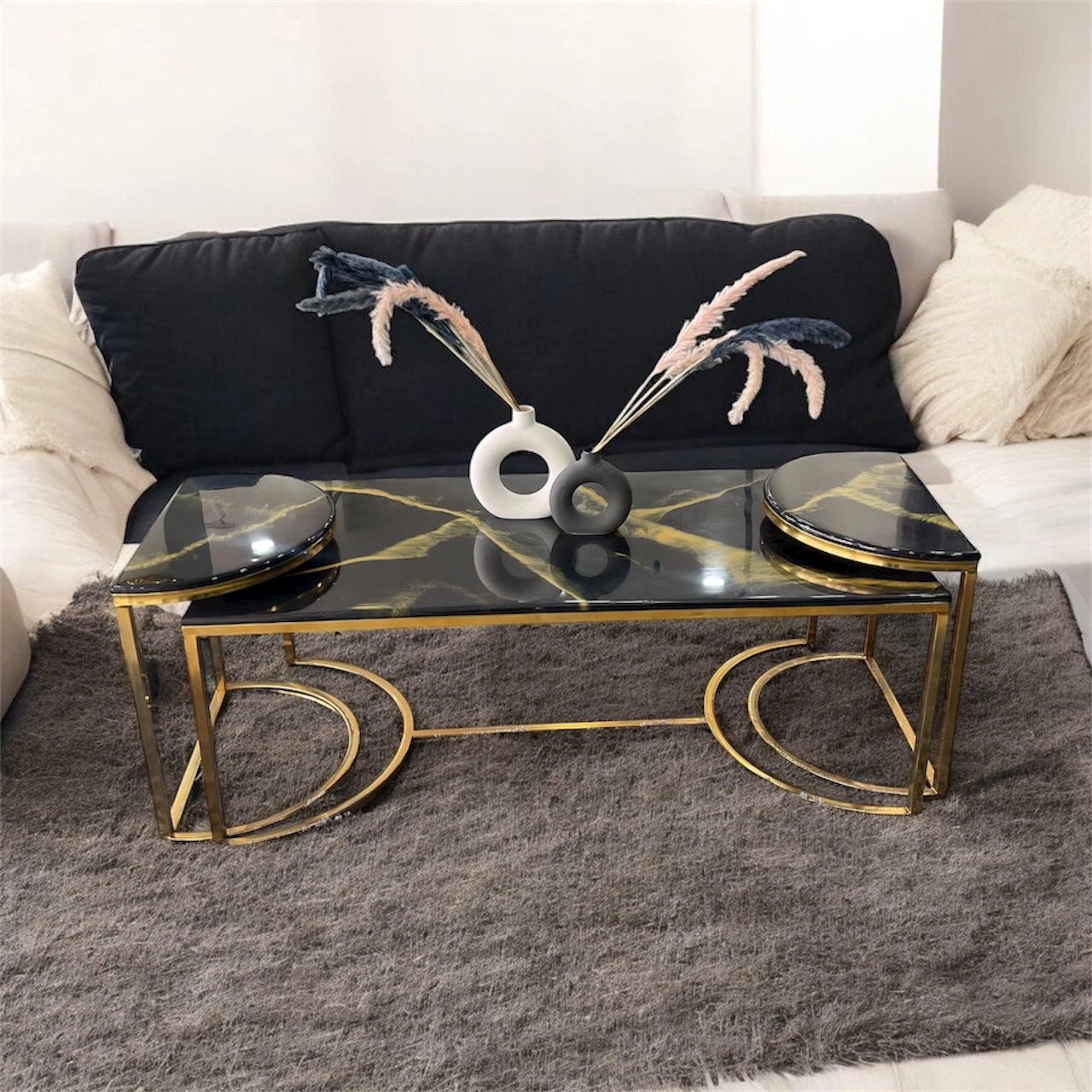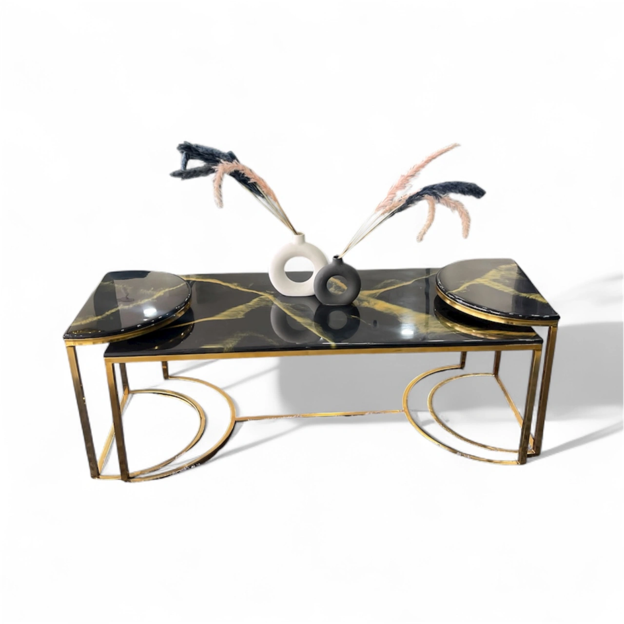 Add a touch of modern luxury to your space with our Epoxy Top Console Table, designed to blend art and functionality. The stunning epoxy resin top showcases a unique glossy finish and handcrafted patterns that make every piece one of a kind. Its chrome golden stainless steel base adds a sleek, elegant look with strong support and long-lasting durability.