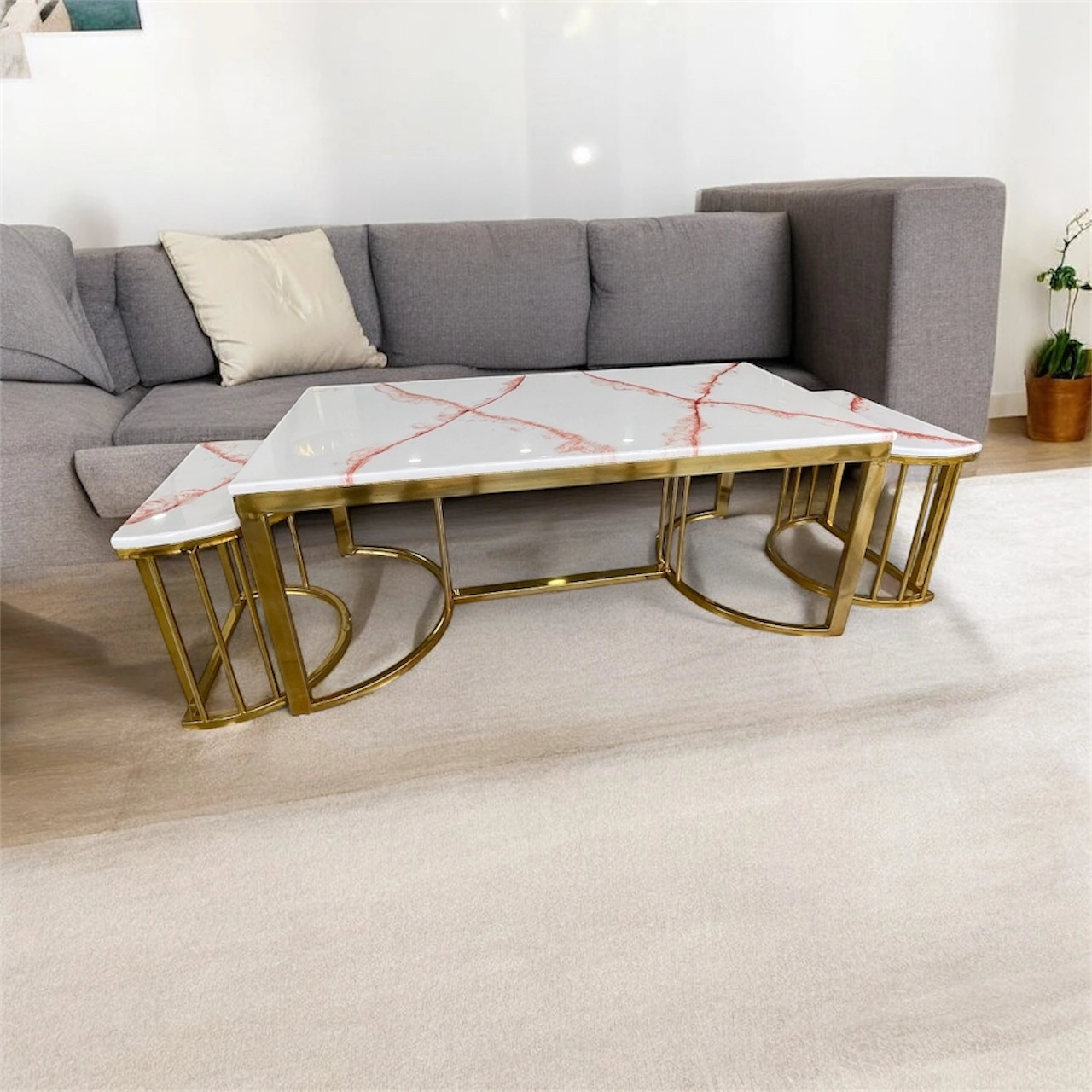 Add a touch of modern luxury to your space with our Epoxy Top Console Table, designed to blend art and functionality. The stunning epoxy resin top showcases a unique glossy finish and handcrafted patterns that make every piece one of a kind. Its chrome golden stainless steel base adds a sleek, elegant look with strong support and long-lasting durability.