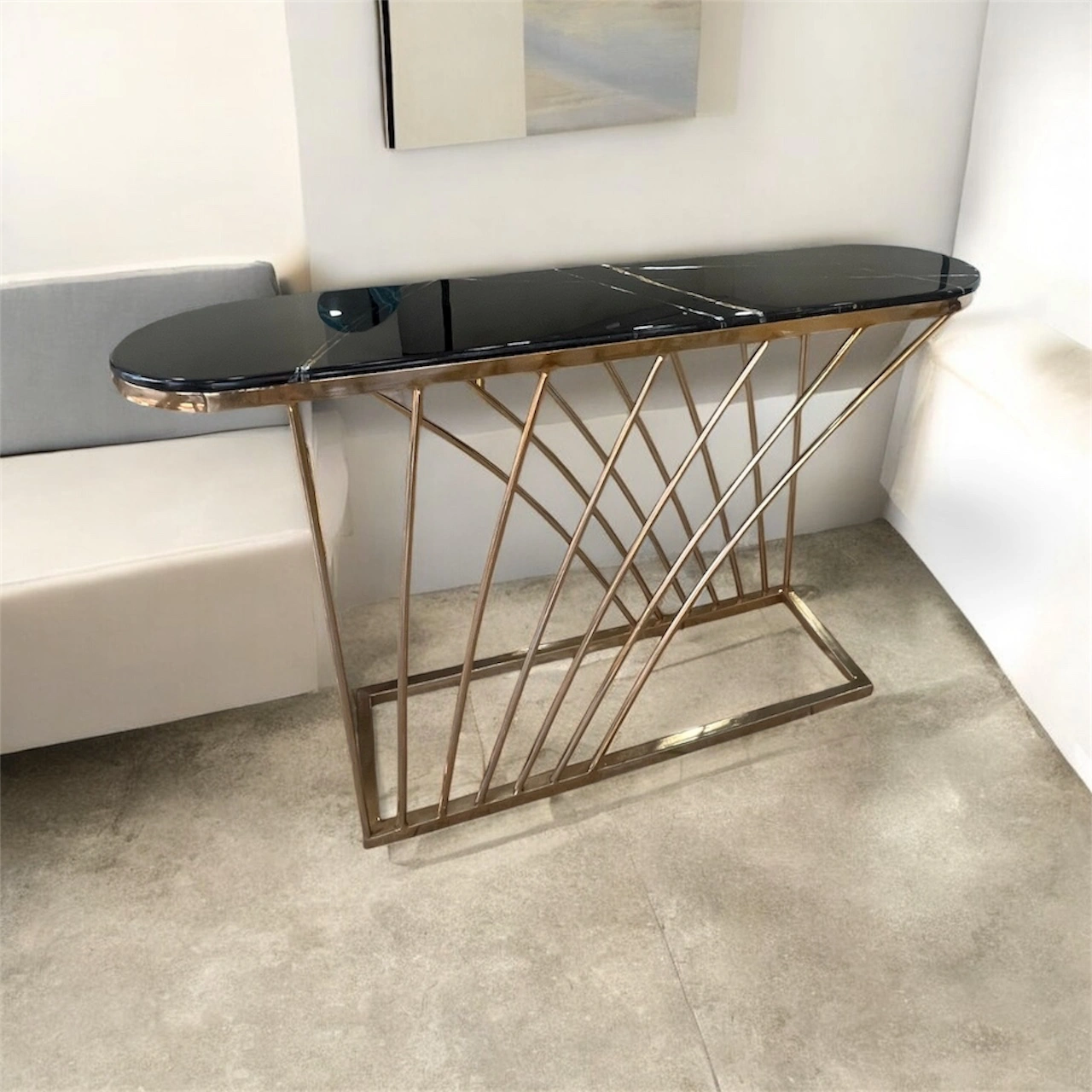 Add a touch of modern luxury to your space with our Epoxy Top Console Table, designed to blend art and functionality. The stunning epoxy resin top showcases a unique glossy finish and handcrafted patterns that make every piece one of a kind. Its chrome golden stainless steel base adds a sleek, elegant look with strong support and long-lasting durability.