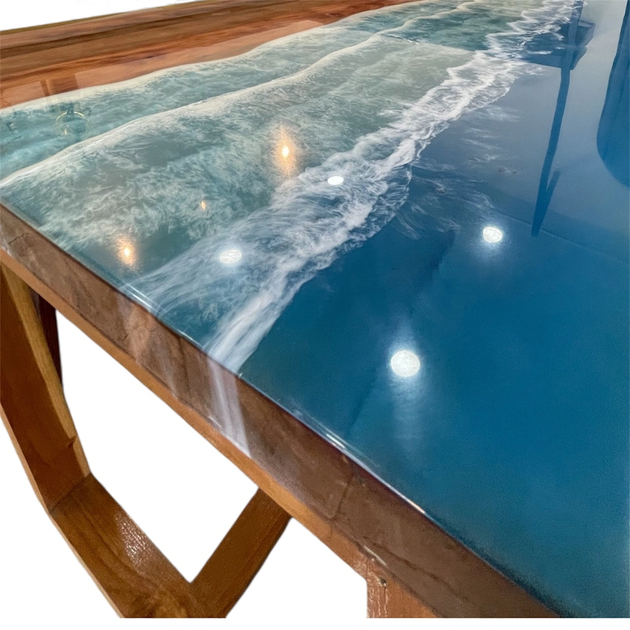 Handcrafted epoxy resin tabletop with natural wood texture